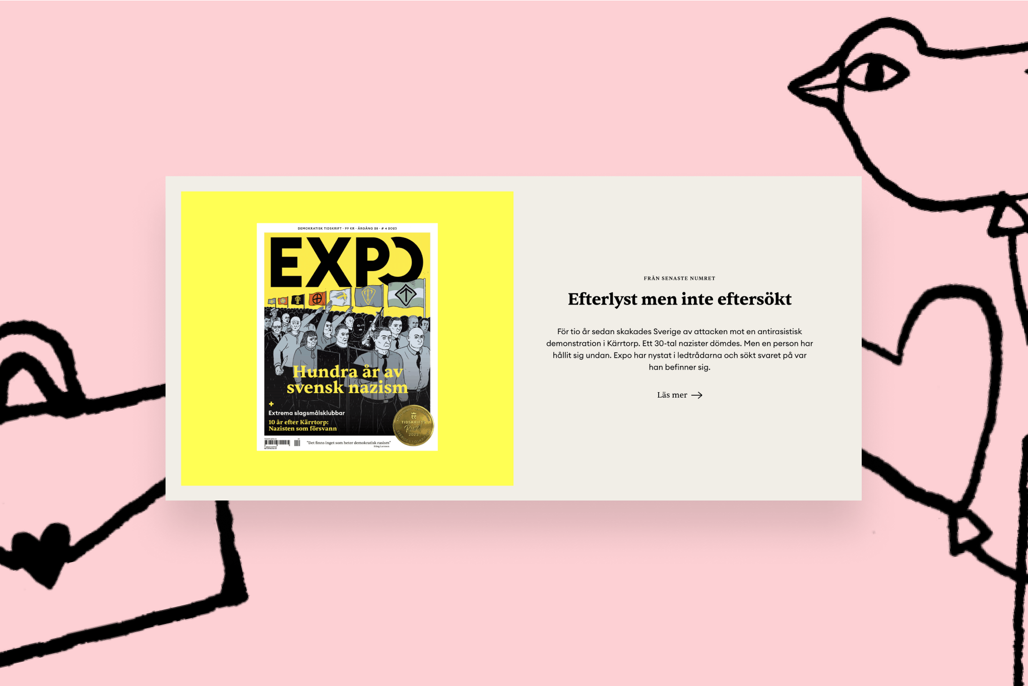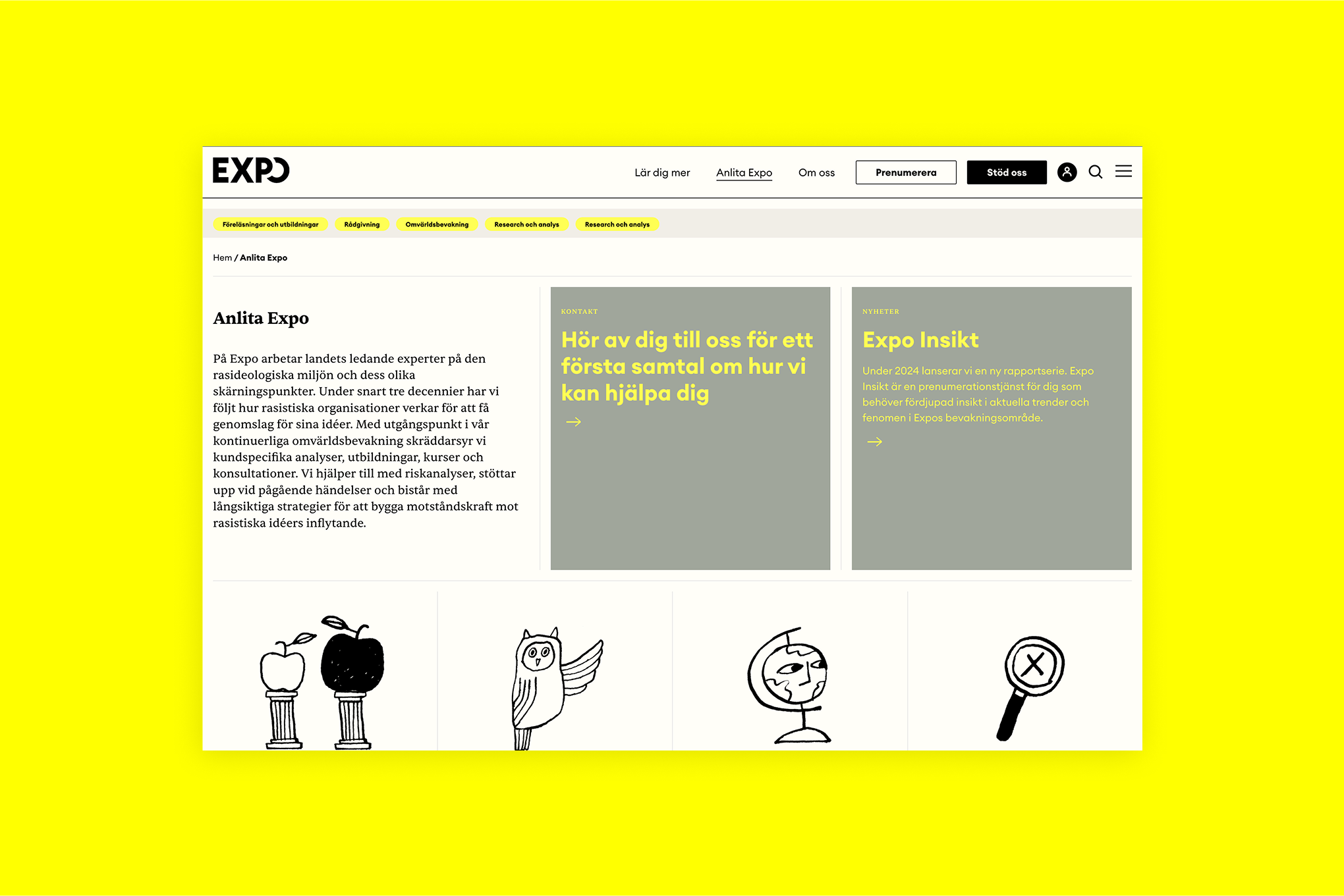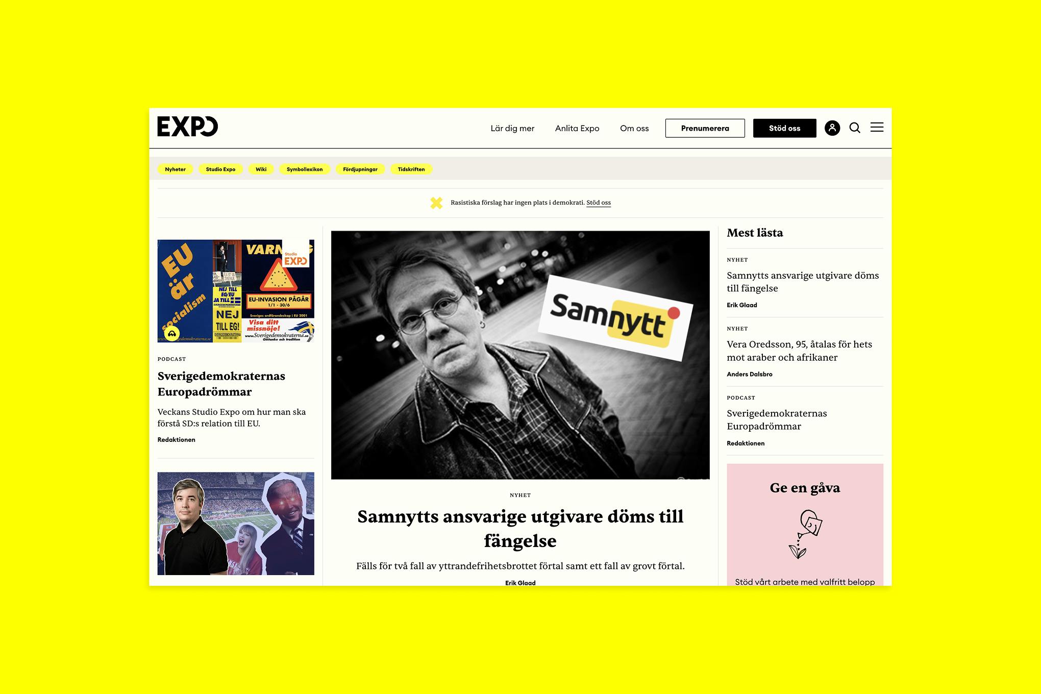 Vi skapade en webbplats som lyfter Expos uppdrag och gör det lättare att nå ut med sitt journalistiska arbete. Den nya designen är tydlig, engagerande och byggd för att skapa förtroende. Resultatet är en modern plattform där innehåll, form och funktion samverkar och där Expo kan fortsätta göra skillnad med sitt innehåll.