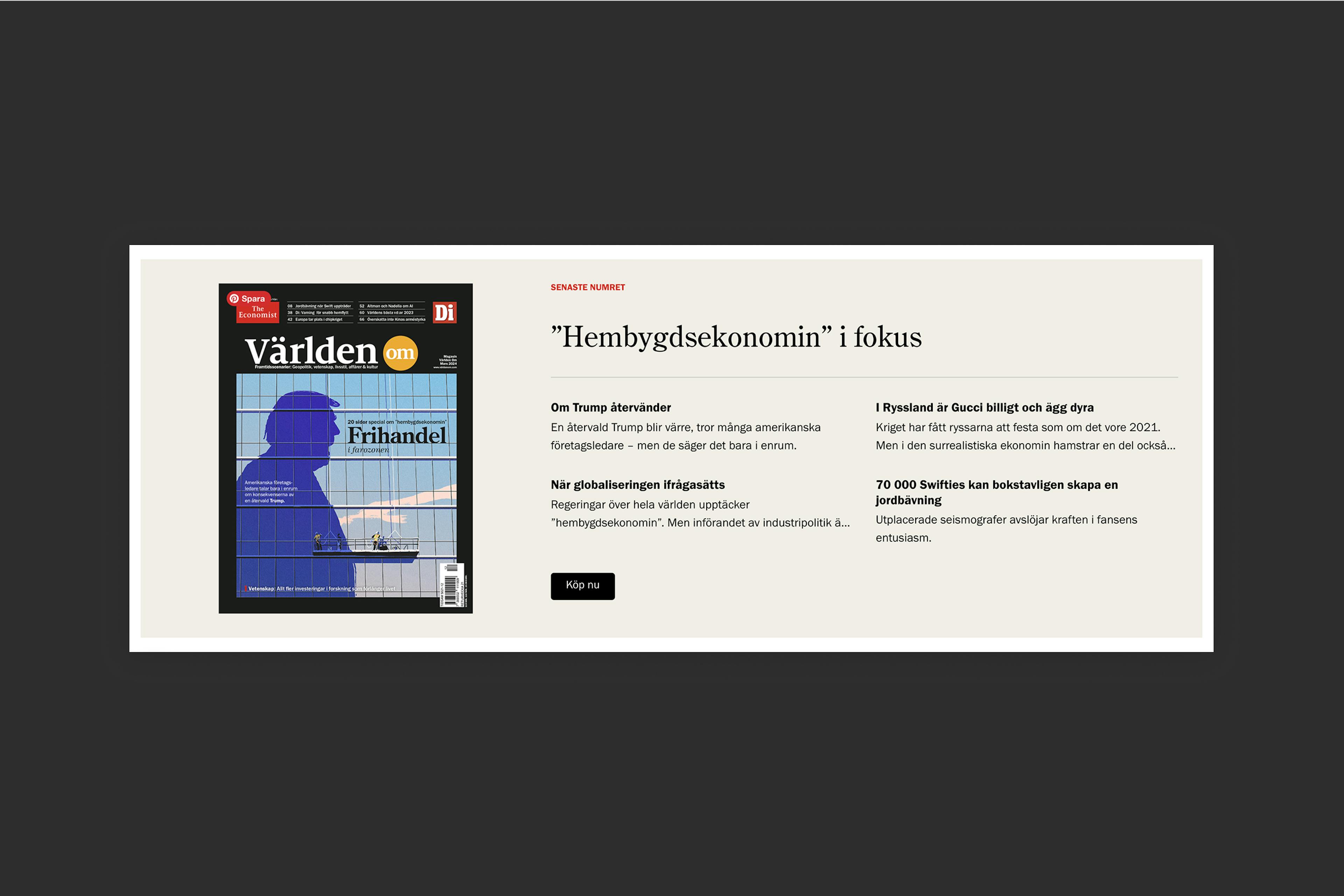 Världen Om stod inför flera utmaningar som behövde adresseras. För det första, hemsidan uppfattades som föråldrad och bristade i möjligheter för kreativ bildhantering. Det saknades en tydlig grafisk koppling till den tryckta tidningen, vilket underminerade den övergripande varumärkeskänslan. Dessutom fanns det inget intuitivt sätt att visa annonser på, vilket hindrade potentiella intäktsströmmar. För administratörerna var det befintliga gränssnittet svårt att arbeta med och ändringar utanför artikelinnehållet var både tidskrävande och besvärliga att genomföra.